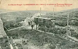 A tramway line from Gérardmer to the Hohneck operated between July 25, 1897, and August 28, 1939. From the Alsace side of the mountain, a rack railway reached the Hohneck from Munster, passing through the col de la Schlucht between 1907 and 1914.