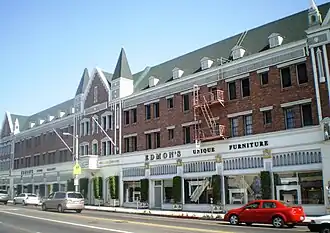 The Hollywood Melrose Hotel, also known previously as the Melrose Arms and later as the Monte Cristo Island Apartments, is a historic building on Melrose Avenue in Hollywood, California. Designed by S. Charles Lee, the structure was built in 1927. It has been used both as a hotel and apartments over the years of its existence, with commercial establishments on the first floor. In 1992, the building was listed on the National Register of Historic Places based on its architecture. In April 2010, the hotel was reopened as the newly restored Hollywood Historic Hotel. Edmon Simonian and his family own the property, and operate a furniture gallery located on the hotel's street level. All of the hotel's facades, common spaces, staircases and 62 rooms were restored to their former 1920s glory following an 18-month interior and exterior renovation. By 2021, the hotel had been stripped of many of its restored components. The lobby no longer includes a fireplace, the walls have been repainted cream, and all the bathrooms have been remodeled with new, more generic tubs, sinks, and mirrors.