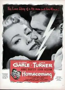 Homecoming is a 1948 American romantic drama film starring Clark Gable and Lana Turner. It was the third of their four films together, and like two of the others, was about a couple caught up in World War II.
