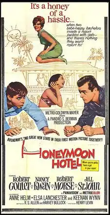 Honeymoon Hotel is a 1964 American romantic comedy film, directed by Henry Levin for Metro-Goldwyn-Mayer. It stars Robert Goulet, Nancy Kwan, Robert Morse, and Jill St. John.[1]
