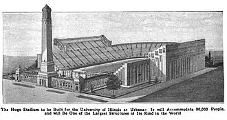 In 1922, he became a partner[2] in the Chicago architectural firm of Holabird & Root.[24] He was in charge of construction for several large projects in the Chicago area, including 333 North Michigan, the Chicago Board of Trade Building, the Palmolive Building and the Stevens Hotel.[25] He contributed to the final designs for both Illinois' Memorial Stadium at Urbana/Champaign and Soldier Field.[26] He remained with Holabird & Root until 1934, when he responded once more to the call of public service.