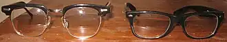Comparison of browline (left) and wayfarer horn-rimmed glasses, with prescription lenses for myopia