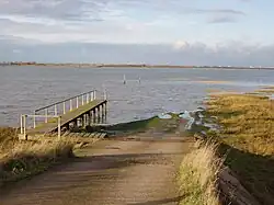 The island is linked to the mainland by a 0.66-mile (1.06 km) causeway across a stretch of water known as the Wade, leading from the nearest village, Kirby-le-Soken, that can be walked with care at low tide.[5][6] It is one of 43 (unbridged) tidal islands that can be accessed on foot from mainland Great Britain.[2]