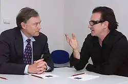 Köhler (l.) as head of the IMF, discussing debt relief for developing countries with the musician Bono
