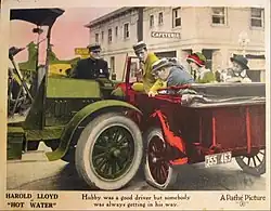 The film is a light comedy with minimal character development, and followed Lloyd’s early 1920s pattern of alternating what he called “gag pictures” with “character pictures.” Some distributors had complained about the length of his previous elaborate feature Girl Shy, and Hot Water was the response. Its storyline was also interesting as a unique departure from most of Lloyd’s 1920s features, because his character was married with a family, and was not striving for success, recognition, or romance. It was popular at the box office and grossed $1,350,000, an excellent return for a film of the period. The fictional "Butterfly Six" was in reality a 1923 Chevrolet Superior Sedan.