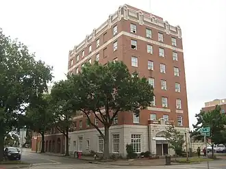 Hotel Warwick is a historic hotel building located at Newport News, Virginia. It was built in 1928, and is a seven-story, brick building in an eclectic Gothic Revival / Art Deco style. It features terra cotta tile ornamentation and a continuous terra cotta and brick false parapet. A two-story addition was added to the rear of the building in 1962. It was the first skyscraper, first tower hotel and first fireproof hotel in Newport News. It replaced an earlier Hotel Warwick built by Collis Potter Huntington in 1883.[3]