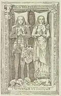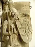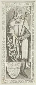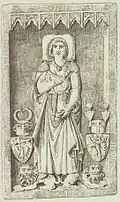 Adalbert II of Ballenstedt, son of Esico and his wife Matilda, was a count in the Nordthüringgau and is mentioned in connection with the Nizizi and Serimunt counties.[10] It is presumed that his mother was the daughter of Duke Herman of Swabia. He married Adelheid, daughter and heiress presumptive of Count Otto I of Weimar-Orlamünde, Margrave of Meissen, and had two sons, Otto the Rich and Siegfried. Adalbert was killed around 1080 by Egeno II of Konradsburg. While speculations about the motive exist, the reasons remain unclear. A seal depicting Adalbert exists,[11] representing the earliest known stylized depiction of an Askanier.