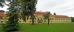 At the beginning of the 19th century, the House of Schwarzenberg was divided into two princely-titled lines (majorats).[1] This division was already foreseen in the will of Prince Ferdinand (1652-1703). However, the absence of two male heirs until Joseph II and Karl I Philipp inhibited the execution. The senior branch, which held not only the Palais Schwarzenberg in Vienna, but also the Dominions of Scheinfeld, Krumlov, Frauenberg and Murau, died out in the male line in 1979 upon the death of Joseph III of Schwarzenberg, who was the 11th Prince of Schwarzenberg. The cadet branch, which was established by Karl Philipp, Prince of Schwarzenberg at Orlík Castle, continues to the present day.
