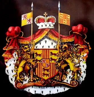 The union of the two lineages, which brought to the birth of the House de Silva Fernández de Híjar Portugal, took place when don Fabrique III de Silva (1672-1700) IV Marquess of Orani, in the second half of the 17th century, married his IV degree cousin Doña Juana Petronilla de Silva Fernández de Ixar (1669-1710) VII Duchess de Ixar or Híjar.[6]
