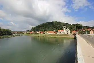 During World War II, the town was occupied by Axis troops and was included into the Pavelić's Independent State of Croatia (NDH). The fascist Ustashe regime committed the Genocide of the Serbs and the Holocaust. Between 29 and 37 July 1941, 280 Serbs were killed and thrown into pits near Kostajnica.[14] The town was bombed by American forces on May 30, 1944.