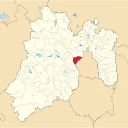 Huixquilucan Municipality is one of the municipalities in State of Mexico, Mexico. It lies adjacent to the west side of the Federal District (Distrito Federal) and is part of Greater Mexico City but independent of Mexico City itself. The name "Huixquilucan" comes from Nahuatl meaning, "place full of edible thistles".[1]
