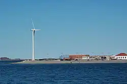 There are no freeways in Hull. Massachusetts Route 228 becomes Nantasket Avenue at the center entrance to Hull. The main entrance is on George Washington Boulevard, which connects to Route 3A at the Hingham rotary. The avenue continues through the rest of town, to Main Street in Hull Village, which then goes on past the Pt. Allerton Coast Guard station ending at Windmill Point, also known as Pemberton Point, at the high school near the Hull Wind 1 windmill. The MBTA's bus service extends into neighboring Hingham, and the Greenbush Line of the commuter rail recently re-opened, with its closest station being at Nantasket Junction, site of the former Hingham Lumber Company lumber yard, which is where the Hull branch of the railroad once connected. This Hull branch was the first electrified railroad in America in 1895. Commuters to Logan International Airport and Boston (and in the summer to Boston Harbor Islands) can take the MBTA Commuter Boat, which leaves from Pemberton Point, the very tip of Hull. The nearest air service can be reached at Logan International Airport in Boston.