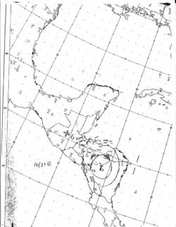Hurricane Gert was a large and deadly tropical cyclone that caused extensive flooding and mudslides throughout Central America and Mexico in September 1993. The seventh named storm and third hurricane of the annual hurricane season, Gert originated as a tropical depression from a tropical wave over the southwestern Caribbean Sea on September 14. The next day, the cyclone briefly attained tropical storm strength before moving ashore in Nicaragua and proceeding through Honduras. It reorganized into a tropical storm over the Gulf of Honduras on September 17, but weakened back to a depression upon crossing the Yucatán Peninsula. Once over the warm waters of the Bay of Campeche, Gert quickly strengthened into a Category 2 hurricane by September 20. The hurricane made a final landfall on the Gulf Coast of Mexico near Tuxpan, Veracruz, with peak winds of 100 mph (160 km/h). The rugged terrain disrupted the cyclone's structure; Gert entered the Pacific Ocean as a depression near the state of Nayarit on September 21, where it briefly redeveloped a few strong thunderstorms before dissipating at sea five days later.