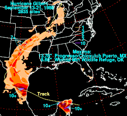 - ^ a b c David M. Roth (2006). "Rainfall data for Hurricane Gilbert". Hydrometeorological Prediction Center. Retrieved 2006-10-16.