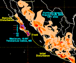 Rainfall from Hurricane Ignacio across Mexico.