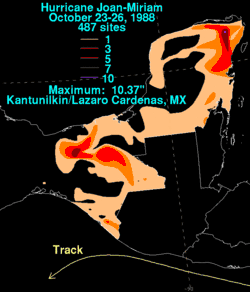 {{cite journal}}: Cite journal requires|journal=(help) - ^ Hydrometeorological Prediction Center. Hurricane Joan-Miriam. Retrieved on 2007-01-31.