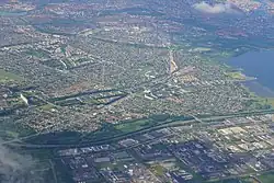 Vestvolden follows the western border of Hvidovre Municipality. Avedøre Airfield from 1917 is Denmark's oldest preserved airfield.[4] Strandengen ("The Beach Meadow") is grazed by cattle and sheep in the summer time.[5] Other green spaces include Kystagerparken, Lodsparken, Mågeparken and Rebæk Søpark.