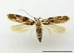 The length of the forewings is 5.5 millimetres (0.22 in) for males and 6.2 millimetres (0.24 in) for females.[1]