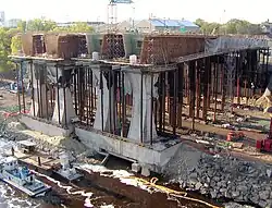 Support posts in construction on the north bank in January 2008 -