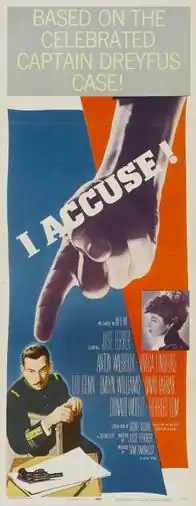 I Accuse! is a 1958 British biographical historical drama film based on the Dreyfus affair, in which a Jewish captain in the French Army, Alfred Dreyfus, was falsely accused of treason and imprisoned for five years before being pardoned. The film is directed by and stars José Ferrer in the leading role, with Anton Walbrook (in his final film role), Viveca Lindfors, Leo Genn, Emlyn Williams, David Farrar, Donald Wolfit, and Herbert Lom. The screenplay, written by Gore Vidal, on Nicholas Halasz’s 1955 account Captain Dreyfus; The Story of a Mass Hysteria.