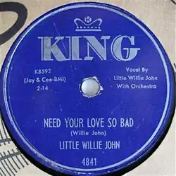 "Need Your Love So Bad", sometimes known as "I Need Your Love So Bad", is a song first recorded by Little Willie John in 1955. Called a "unique amalgam of gospel, blues and rhythm & blues",[1] it was John's second single as well as his second record to reach the US charts.