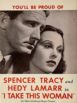 I Take This Woman is a 1940 American drama film directed by W. S. Van Dyke and starring Spencer Tracy and Hedy Lamarr. Based on the short story "A New York Cinderella" by Charles MacArthur, the film is about a young woman who attempted suicide in reaction to a failed love affair. The doctor who marries her attempts to get her to love him by abandoning his clinic services to the poor to become a physician to the rich so he can pay for her expensive lifestyle.[2]