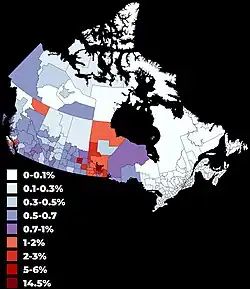 13. ^ Government of Canada, Statistics Canada (2013-12-23). "Ethnic Origin (232), Sex (3) and Single and Multiple Responses (3) for Population, for Canada, Provinces, Territories, Census Metropolitan Areas and Census Agglomerations, 2001 Census - 20% Sample Data". www12.statcan.gc.ca. Retrieved 2022-09-28.