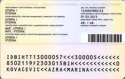 The descriptions of the fields where the citizen's information is visible is shown in Bosnian, Croatian (one field only), Serbian (Cyrillic) and English.
