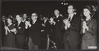 In 1939 Larramendi commenced studying law in Madrid, graduating in 1941;[21] though initially he intended to be a lawyer,[22] in 1944 he was employed at Dirección General de Seguros, a state insurance regulatory body. Since 1940 he was dating Lourdes Martínez Gutiérrez (1924–2015), granddaughter to general Alfredo Gutiérrez Chaume;[23] her father, "funcionario de Hacienda",[24] died early. The couple married in 1950[25] and had 9 children, born between 1951 and 1965.[26] The best known of them, Ramón Hernando de Larramendi, is widely recognized in Spain as a polar explorer.[27] Luis succeeded his father in business[28] and in politics, rising to high positions within the Carlist structures[29] and animating a number of Traditionalist activities.[30] Miguel is known as professor of Arabic studies in Madrid[31] and Margarita as a poet and scholar in linguistics.[32]