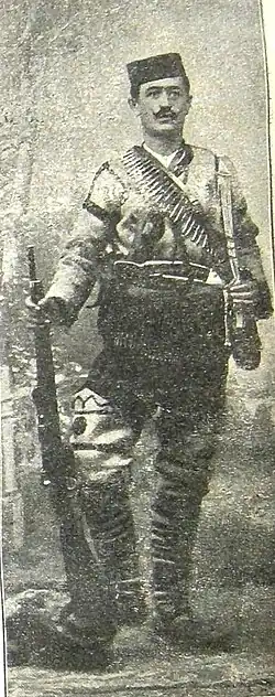 Ilija Jovanović (Serbian Cyrillic: Илија Јовановић, 1878–1913), known as Vojvoda Pčinjski, and by his nom de guerre Časlav, was a Chetnik commander active between 1904 and 1912, and a member of the Black Hand.[1] He was schooled in Vranje, Paraćin, Kragujevac. He was among the first Chetniks on the Kozjak together with commanders Jovan Dovezenski, Krsta Preševski, Spasa Garda, Đorđe Skopljanče, Rista Starački and Vanđel Skopljanče. Vojvoda Pčinjski was the chief of one of the board of the Chetnik organization. He went from a battle to another until he was wounded in 1912. He died in the Belgrade Military Hospital, at the time when the Serbian Army liberated Bitola and broke out on the Adriatic.[2]