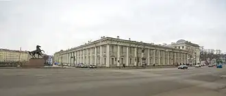 Until 1885, the facades of a building with columns of a "giant" Ionic order penetrated wide arcades, through which a view of the Anichkov Palace opened. In 1885, the arcades were laid. From the Fontanka side to this day there is an open colonnade with a driveway into the courtyard. Since 1937 the building housed the Leningrad Palace of Pioneers, now the Saint Petersburg City Palace of Youth Creativity.