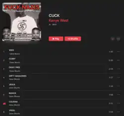35. ^ a b Moore, Sam (May 19, 2025). "Kanye West's 'Cuck' Album Leaked By Hackers". HipHopDX. Retrieved May 19, 2025.