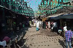 From these first early settlers, communities of Chinese influence sprung up throughout the area, neighbourhoods of immigrants cooking and eating foods from their homeland. These Canton cuisines, known in China to be light and fresh in flavour, began to adapt and evolve into the new area. One reason is due to the availability of ingredients and spices being different from those in Guangdong, therefore forcing the flavour to naturally Indianize; additionally, Chinese businesses began to cater their foods to the tastes of their Indian patrons to increase sales, utilizing more spices and heavier douses of sauce and oil than their traditional techniques required.[6] Recognized as one of the first Chinese Indian restaurants in the country, the still-standing corner eatery of Eau Chew gained its popularity by using the fashionable pull of exotic Chinese foods combined with non-threatening familiar flavours of chili, curry, and corn starch, to attract and keep-on customers.[3][6] Kolkata today boasts the only Chinatown in the country, a neighbourhood known as the Tiretti Bazaar.[2] This being said, nearly every city in India has these adapted "Chinese" foods, whether found in restaurants or hawked by roadside vendors, as the greasy, spicy, stir-fried food that has become wildly popular throughout the country.[6] It is also important to note those Chinese returning from India to their homelands in China's south, for they often brought their new culinary practices and flavours with them, working to Indianize the taste of Cantonese-style foods in southern coastal cities such as Hong Kong.[6]