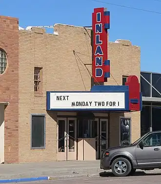 The Inland Theater is a historic theater located in Martin, Bennett County, South Dakota, United States.[4] The Inland Theater is the second theater constructed in the city of Martin. The first theater, the Allen Theater, was built in 1925 and 1926 and was one of the first theaters in western South Dakota to show talkie movies. The Allen Theater was destroyed by a tornado in 1939, and soon thereafter, construction of the Inland Theater began in September 1939.[5] The Inland theater was constructed in the Art Deco style of architecture[3] and held 300 people.[6] The theater opened on January 14, 1940[6] and continued until 1991, when it was put up for sale. In 1997 the Inland Theater was purchased and reopened.[7]