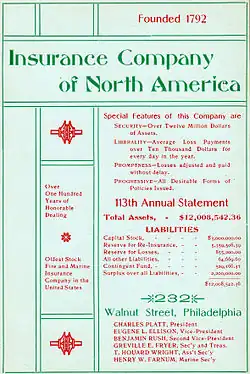 Insurance Co. of North America advertisement, 1905