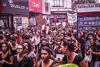 19 October 2016, saw the #NiUnaMenos protest against femicide in Argentina, a large-scale response to the murder of 16-year-old Lucía Pérez.[6] Similar demonstrations took place in other Latin American countries including MexicoEl Salvador, Chile, and others.[7] A week later, on 25 October 2017, Brazil held its own #NiUnaMenos strike.[8]