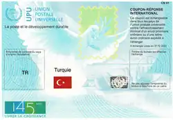 20. ^ "INTERNATIONAL REPLY COUPON 150 yers UPU - Post Philately". Retrieved 27 November 2024.