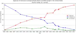 - ^ a b "Most Americans Approve of Interracial Marriages". Gallup, Inc. August 16, 2007. Retrieved January 16, 2013.
