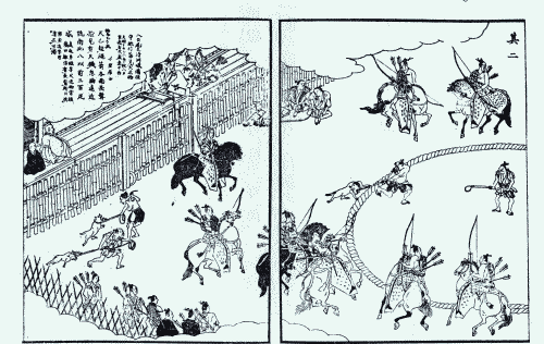 Inuoumono (犬追物) was a Japanese sport that involved mounted archers shooting at dogs. The dogs were released into a circular enclosure approximately 15m across, and mounted archers would fire upon them whilst riding around the perimeter.[1]