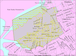 Inwood's northernmost and westernmost boundaries border Queens in the City of New York, and it is located across Head of the Bay from John F. Kennedy international Airport.[5]