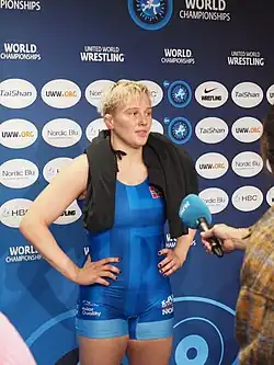 Iselin Moen Solheim at the 2021 World Wrestling Championships in Oslo, Norway
