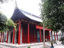 In Guangzhou, there are three tombs of Ming loyalist Muslims who were martyred while fighting in battle against the Qing in the Manchu conquest of China in Guangzhou. The Ming Muslim loyalists were called "jiaomen sanzhong ("Three defenders of the faith" or "The Muslim's Loyal Trio").[62][63]