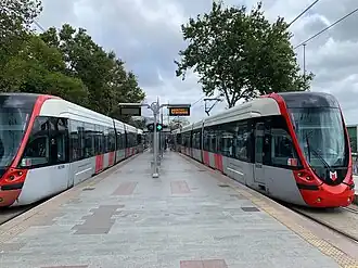 The Istanbul Tram (Turkish: İstanbul Tramvayı) is a modern tram system on the European side of Istanbul. The first section, the T1 opened in 1992, followed by the T2, which opened in 2006. In 2011, the T1 and T2 merged, with the line retaining the T1 name. The T4, T5 and the T6 lines followed, opening in 2007, 2021 and 2024 respectively.[2][3][4]