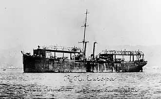 Europa was a seaplane carrier of the Italian Regia Marina (Royal Navy). Originally laid down as the merchant ship Manila, she was renamed Salacia in 1898, and then sold to German and then Italian shipping companies in 1911 and 1913, respectively. She became Quarto in 1913, and in February 1915 she was purchased by the Italian fleet, renamed Europa, and converted into a seaplane carrier with a capacity of eight seaplanes. She served as a seaplane base in Valona during World War I and supported the Allied response during the Battle of the Strait of Otranto in 1917. She was quickly sold for scrap in 1920 after the war ended.