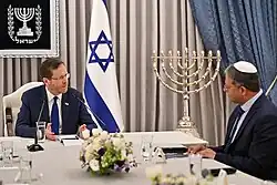 In the 2022 Israeli legislative election, Otzma Yehudit again ran as part of a combined list with the Religious Zionist Party, led by Bezalel Smotrich. This combined list was strongly encouraged by Benjamin Netanyahu, who publicly posted a video address warning against the parties running independently and risking falling below the 3.25% electoral threshold needed to get a seat.[35] The prospect of Ben-Gvir and Smotrich entering government was highly controversial. Yaakov Katz, the then editor of The Jerusalem Post, warned that such a government would work "toward the same goal of destroying Israeli democracy."[36] The combined list received the 3rd most votes in the 25th Knesset, a total of 14 seats out of 120.[37][38] Ben-Gvir and his party entered a Netanyahu-led government. The president of Israel, Isaac Herzog was heard on a hot mic saying that the entire world was worried about Ben-Gvir becoming a minister.[39] It was reported in late November 2022 that Ben-Gvir would head the newly created National Security Ministry, whose duties would include overseeing the Israel Border Police in the West Bank.[40]