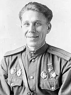 His photo was featured on the cover of the newspaper Krasnaya Zvezda on 29 May 1945[6] and his feats were described in detail by major newspapers including Krasnaya Zvezda and Izvestiya.[7][8]