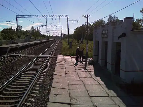 Ivanovskaya (Russian: Ива́новская) is a railway station of the October railway,[1][2] located in Otradnoye (suburb of Saint Petersburg), Russia. It was opened in 1918.[3] The station is located 33 km (21 mi) from Moscow Station (the main station in St. Petersburg) on the Sapernaya - Pella stretch, the St. Petersburg - Volkhovstroy line. There are two platforms at the station which receive electric trains 12 carriages long. There is also a ticket office.