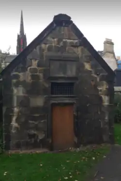 He died on 17 September 1699.[3] He was buried in the Trotter vault at the north end of Greyfriars Kirkyard.[5]