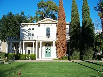 Lick built this Italianate Victorian mansion between 1858 and 1860 next to his flour mill. The mansion is constructed of native redwood featuring detailed woodwork and imported marble fireplaces in each of its 24 rooms.[2]