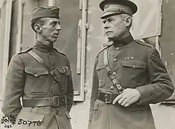 Major General James McRae, commanding the 78th Division, pictured here in conversation with the division's chief of staff, Colonel Charles D. Herron, at Chatel Chehery, Ardennes, France, October 25, 1918.